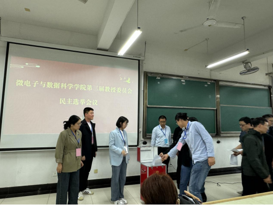 第三届教授委员会委员候选人名单,详细介绍选举程序、选票填写说明。大会通过了选举总监票人、监票人和计票人名单。随后,全院教职工进行无记名投票,选举出新一届教授委员会委员,选举总监票人孙文斌当场宣布选举结果。
