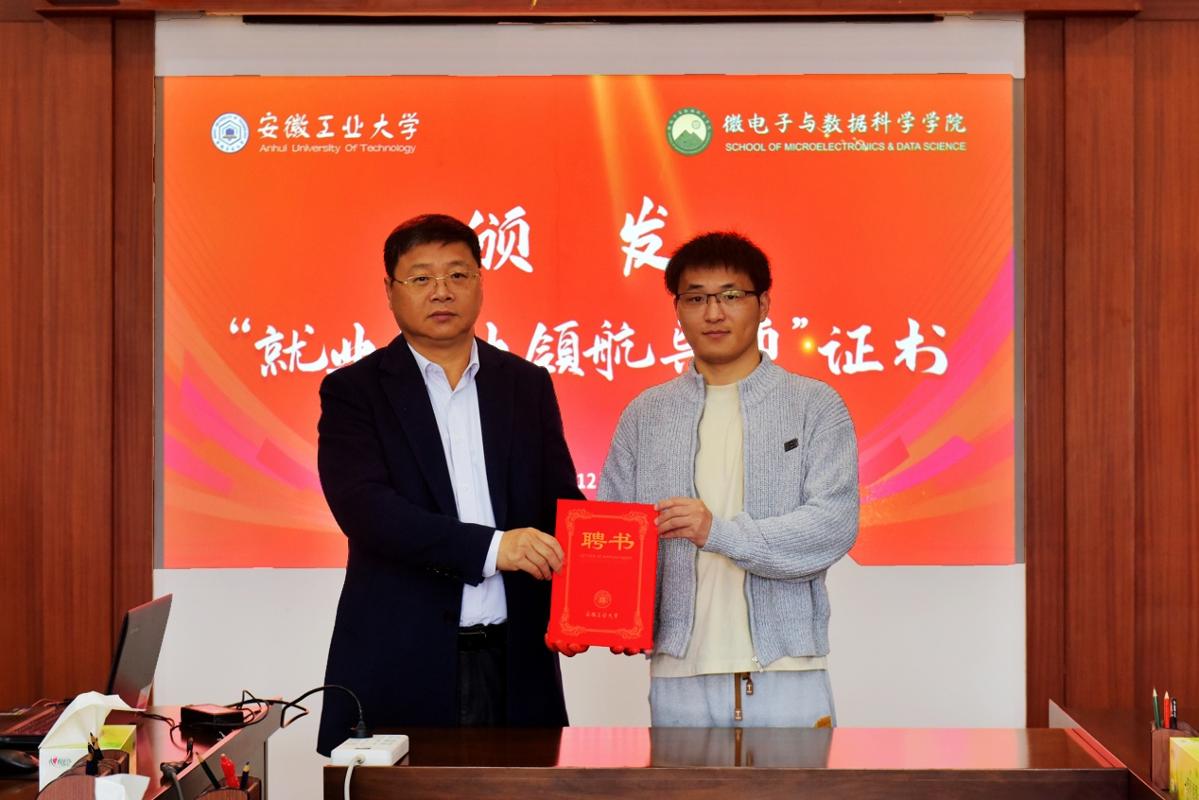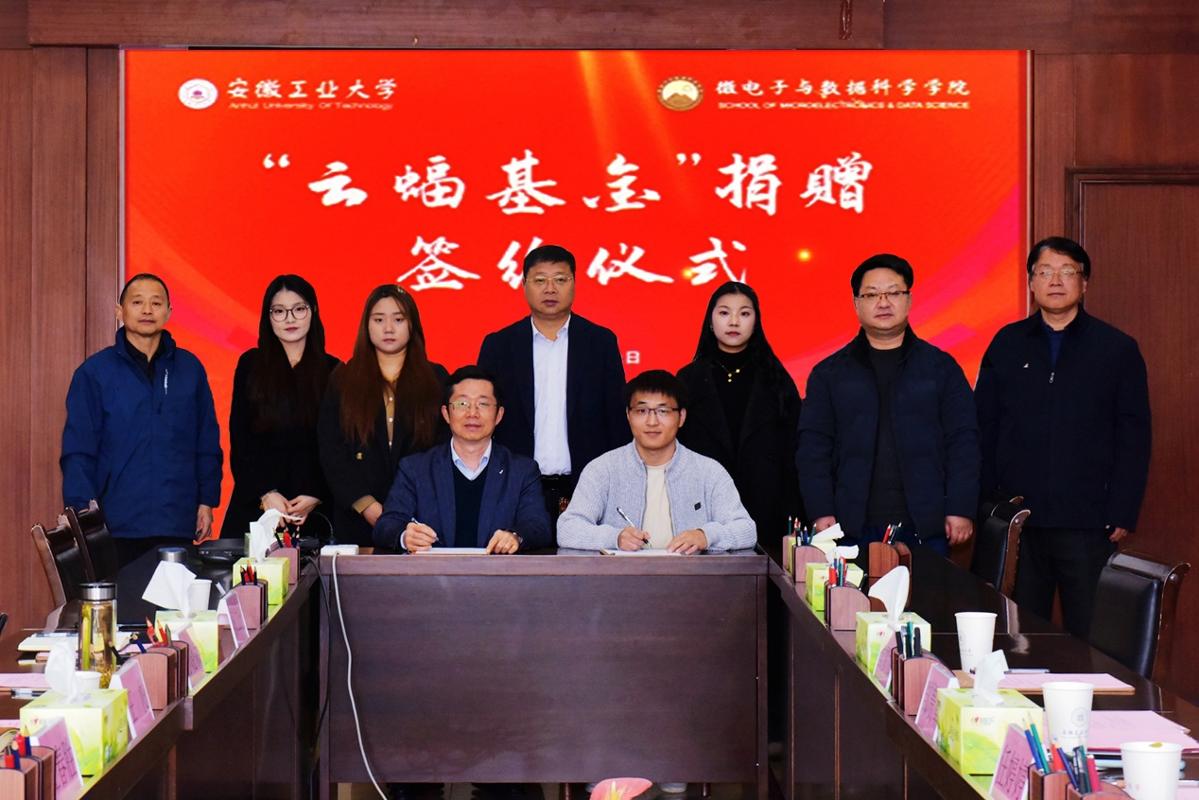 会上,双方共同签署了“云蝠基金”捐赠协议,王俊代表学校为邹章贵颁发“安徽工业大学就业创业领航导师”证书。