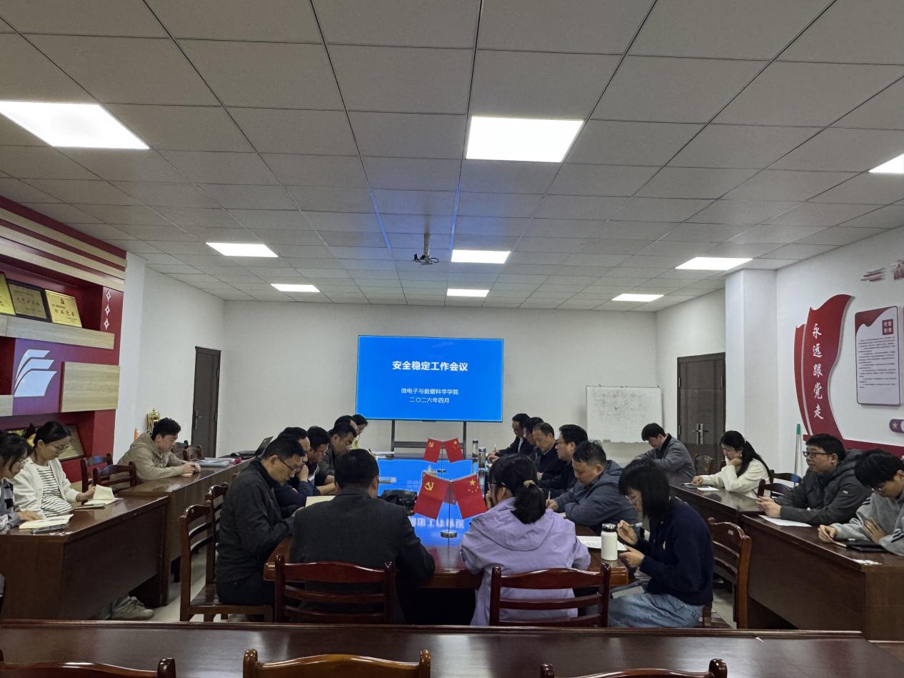 召开2026年安全稳定工作会议,部署学院2026年度安全稳定重点工作。学院各党支部书记、系部主任、学科实验室负责人及辅导员参加会议,会议由院长杨二光主持。