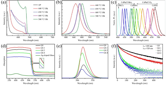 (钙钛矿量子点玻璃晶化机理及发光原理图)