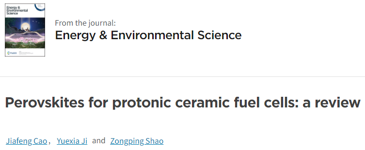 近日,我院光学工程学科教师曹加锋副教授与南京工业大学邵宗平教授共同在国际权威期刊《Energy & Environmental Science》上发表题为“Perovskites for protonic ceramic fuel cells: a review”的文章。《Energy & Environmental Science》是能源、环境、物理、化学等领域最具影响力的期刊之一,2021年最新影响因子为38.5。海星体育 为该论文第一单位,曹加锋副教授为论文第一作者和通讯作者,邵宗平教授为共同通讯作者。该工作得到了安徽省自然科学基金、安徽省高校自然科学研究重点项目的资助。