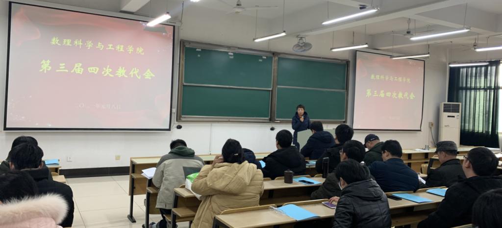 1月8日下午,数理科学与工程学院在数理楼403召开三届四次教代会暨全院教职工大会,学院三届教代会代表及全院教职工参加了会议,会议由学院党委书记张清主持会议。