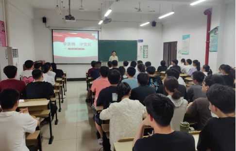 为深入学习贯彻习近平总书记关于党纪学习教育的重要讲话和重要指示精神,6月11日,微数学院举办党纪学习教育宣讲报告会,第五届辅导员宣讲团成员王小花主讲,全体学生党员参加,会议由院团委书记段世祥主持。