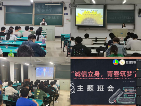 为进一步增强大学生的诚信意识,努力营造“人人知诚信,处处讲诚信”的良好氛围,5月4日至5月20日,数理科学与工程学院开展“诚信立身,青春筑梦”主题班会及承诺宣誓活动,弘扬诚信文化,倡导诚信行为,以实际行动迎接党的二十大胜利召开。