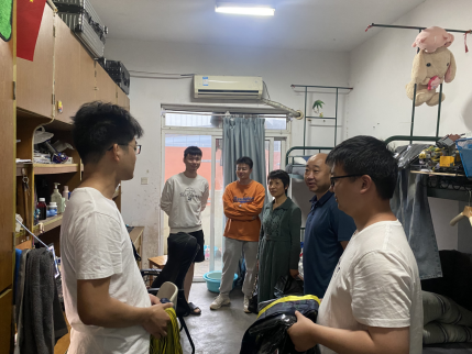 每走进一间宿舍,老师们都与毕业生们进行亲切交流,了解他们的生活情况,关切地询问毕业去向以及未来打算,给即将离别的毕业生们带去了温暖和鼓励。老师们与毕业生们一起回忆往昔,交谈现状、畅谈未来,宿舍里常常传来明快爽朗的笑声。