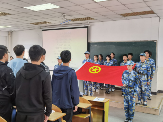 仪式在慷慨激昂的共青团团歌中开始,四名护旗手迈着整齐的步伐将团旗迎上舞台,全体团员向团旗行注目礼,重温入团誓词,表达自己自觉履行团员义务,坚决拥护党的领导的决心。老生团员代表汪唯雅结过去一年的经历,介绍了自己在思想、学习和生活上的收获,号召同学们作为大学生共青团员要严格要求自己,用党的先进理论不断武装自己。微211班时晓敏代表新生团员发言,表达自己作为一名团员的光荣感和自豪感,并表示要牢记团员身份,严格要求自己,努力为校争光。陈恳在会上希望新生团员,在思想上积极要求进步,端正入党动机,向党组织靠拢,积极参加院校活动的同时注重提升自身素质和能力。最后,与会老师为新团员代表佩戴团徽、颁发团员证和团章,并和全体团员共同观看了共青团发展历史视频。