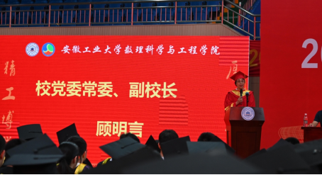 校党委常委、副校长顾明言作了热情洋溢的讲话,她代表学校向顺利完成学业的数理学院2022届277名毕业生表示热烈的祝贺,向辛勤培育学生的全体教职员工表示衷心的感谢。在致辞中顾明言饱含深情的说:“作为优秀的工大学子,你们经受了新冠肺炎疫情的严峻考验,见证了风雨中勇毅前行的中国力量,见证了奋进中开拓创新的工大风采。”她对同学们提出三点希望:一是希望同学们牢记使命,不负韶华,从百年党史中汲取奋进力量;二是希望同学们心怀感恩,情系工大,做志存高远、心怀家国的新时代青年;三是希望同学们开拓创新,逐梦远航,主动担起建设科技强国的时代使命。她鼓励同学们自觉将个人梦与中国梦紧密结合起来,自觉弘扬伟大建党精神,在报效祖国、服务人民、奉献社会的征程中实现人生价值,以更加优异的成绩为党旗增辉,为母校添彩,不负韶华,不负时代,不负人民,在青春的赛道上奋力奔跑,争取跑出当代青年的最好成绩!