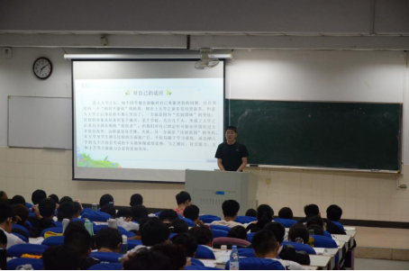 在阶教102教室开展2023级新生入学适应心理讲座。活动由学院心理工作站站长张佳良主讲,2023级全体本科生参加。