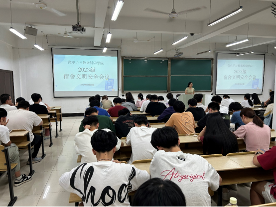 为进一步推动文明安全宿舍创建,明确寝室长工作职责和任务要求,加强端午节前安全管理,5月28日,微数学院在数理楼403召开“以‘舍’为家,共‘寓’美好”宿舍文明安全会议。辅导员王小花主讲,各班纪律委员、2023级全体寝室长参会。