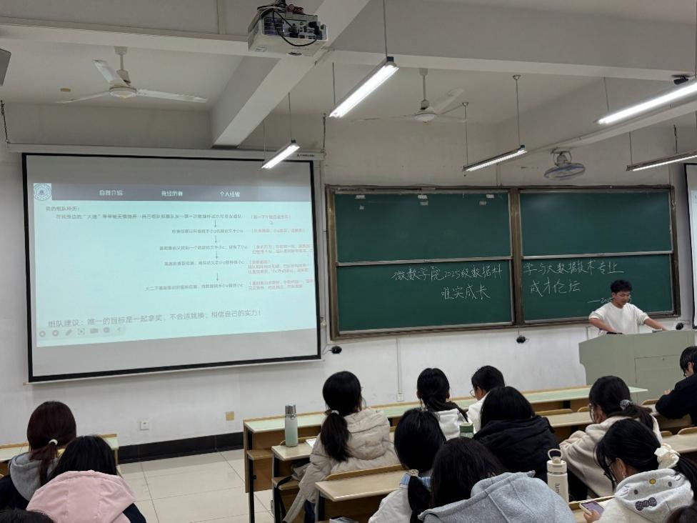 为充分发挥优秀学长学姐的榜样引领作用,帮助2025级大一新生明晰成长方向、破解适应难题,11月30日,微数学院关工委联合学生工作办公室举办“唯实”学生成长成才论坛(第七期)。本次论坛邀请2022级数据科学与大数据技术专业优秀学子祖昂、赵泽洋担任主讲人,2025级大数据专业新生全程参与,辅导员周文潇主持。