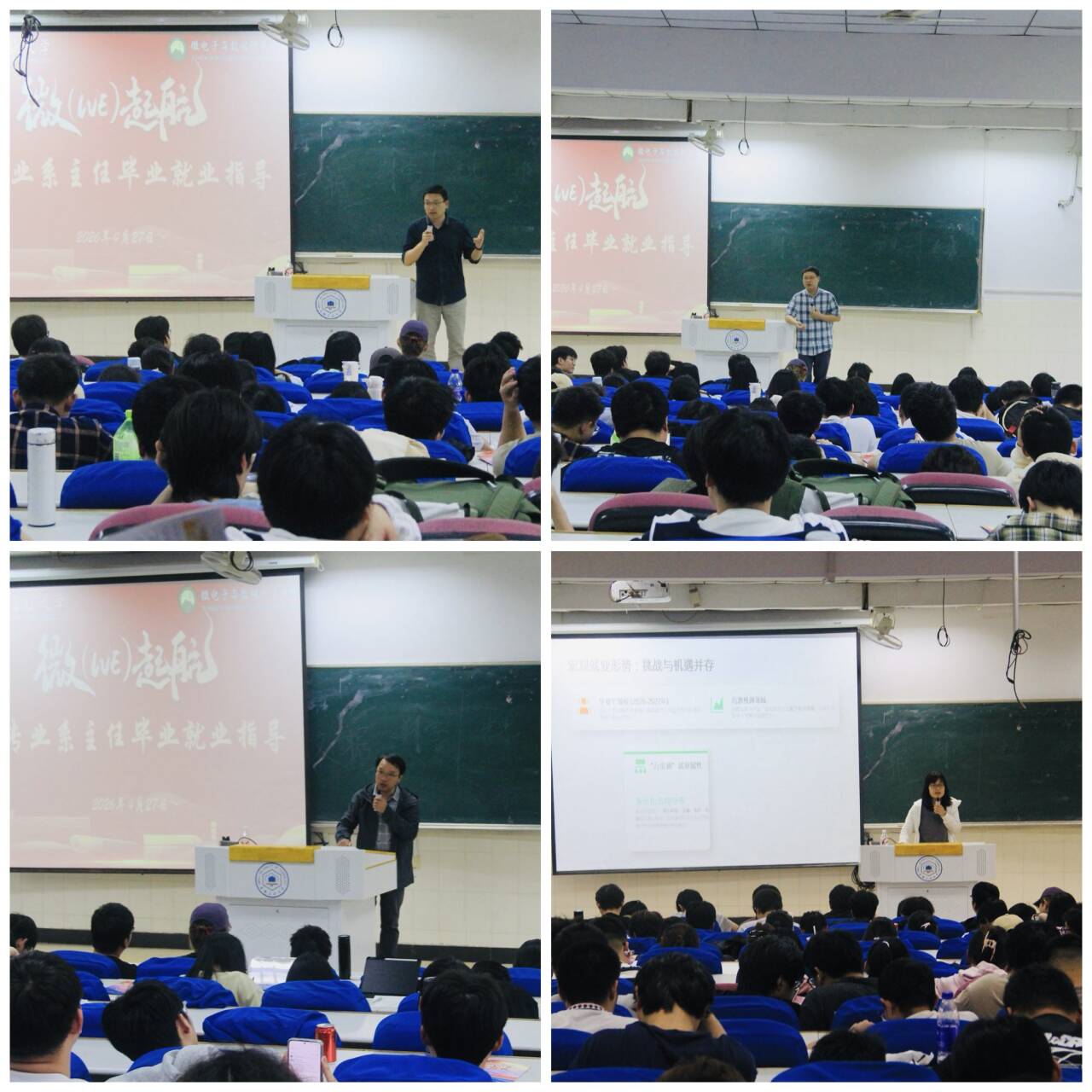 随后,来自微电子科学与工程、数据科学与大数据技术、光电信息科学与工程、数学与应用数学四个专业的系主任依次上台,结合各专业近年就业形势与行业趋势,进行了针对性的毕业就业指导及工作布置。各位系主任还就毕业设计进度、学分自查、实习材料提交等工作进行了统一布置,确保“就业升学两不误”。