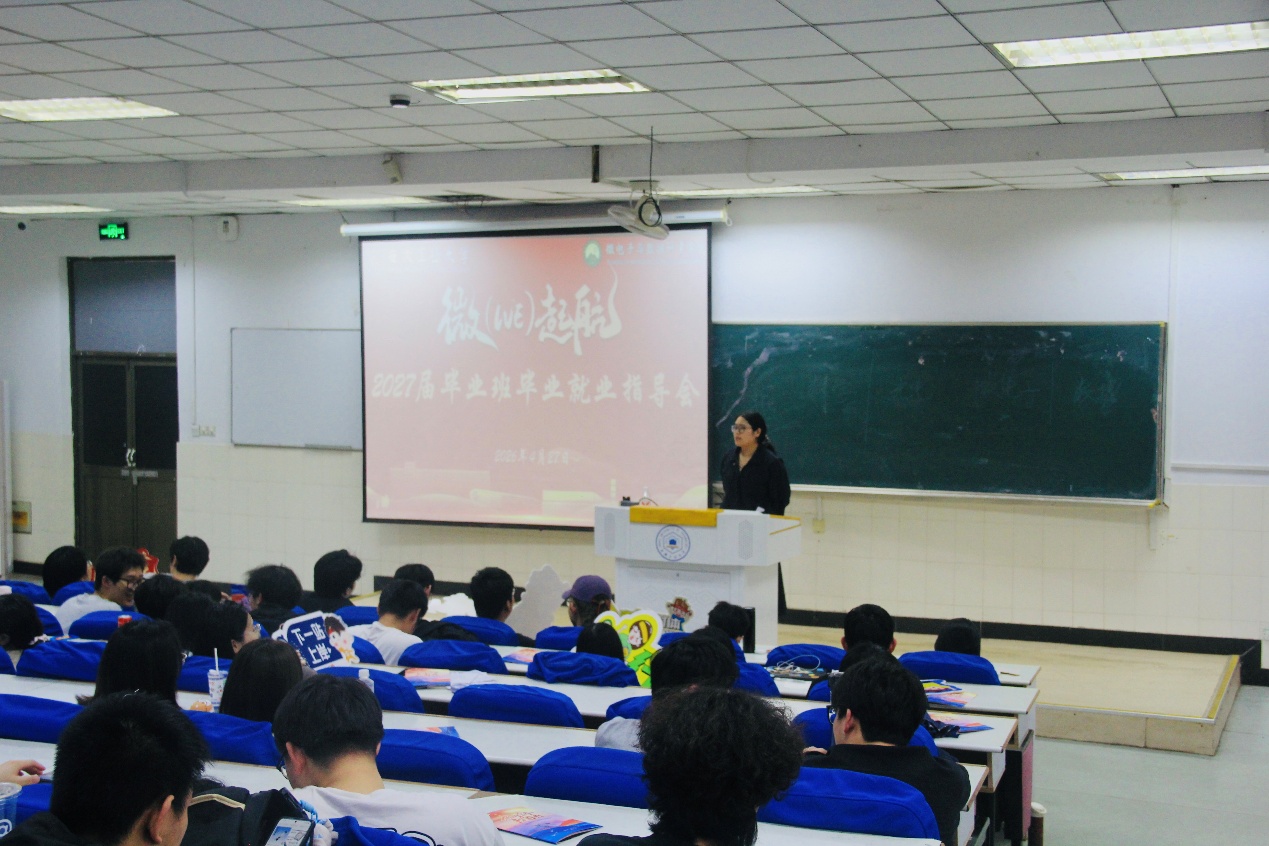 在阶教102召开2027届毕业班毕业就业指导会,院党委副书记、纪委书记、副院长张敏、硕士点负责人莫绪涛、张涛、各专业系主任和2023级全体学生参加会议,会议由辅导员王小花主持。
