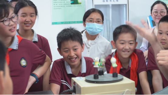 在老师的演示下,一个个生动有趣的现象,如同变戏法一样地展示了出来,牢牢地吸引了孩子们的注意力。机翼升力、记忆合金、共振、避雷针、电磁炮等各种高深的物理知识,都变成了酷炫的玩具,孩子们体验各种实验装置,全神贯注地观察和倾听,生怕错过任何一个细节。他们的脑洞大开的问题和答案引发了阵阵笑声,原本严肃的实验课堂变成了欢快的探索乐园。同学们表示这次活动比他们看的科普书还有趣,还想再来一次。